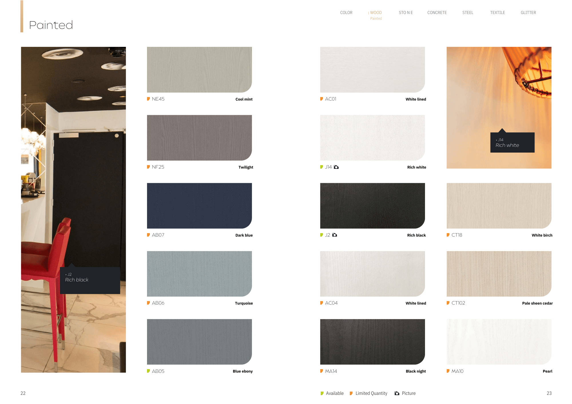 Our Designer Range showcases a curated collection of premium vinyl finishes designed to make a statement. Featuring rich textures, distinctive patterns, and high-end surfaces such as stone, concrete, metallics, and wood-inspired finishes, this range is ideal for clients looking for a more bespoke, design-led result. Browse the vinyl colour chart below to explore the Designer Range available through ModiWrap for standout kitchens, wardrobes, feature surfaces, commercial spaces and more.